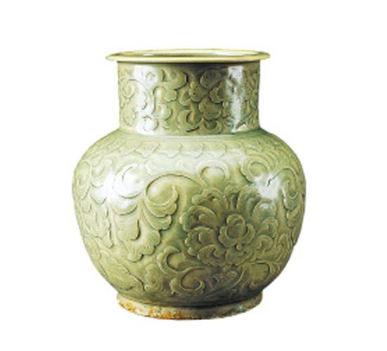 北宋青釉刻花缠枝牡丹纹直口尊 |
