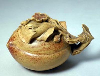 砚滴是什么,如何定义?——往砚中注水的各种造型的文房小器物中,有单独的进水孔和出水孔,且水流细缓者谓之砚滴。砚滴做工都比较精美,材质除金属、玉石、玛瑙外,大多是陶瓷材料的。在造型设计上,也是穷其工巧,堪与后世出现的紫砂壶艺术相媲美。它们大都古雅别致,多姿多彩,散发着浓郁的中国文化气息。