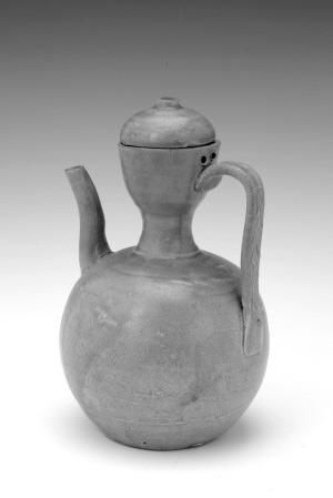 今天,摆在面前的这个壶,我一直找不到合适的名称。虽然它躺在博物馆的库房里,已经有一个官方名字:五代青釉杯口执壶。用杯口两字来概括此壶的特点,我认为是经验性的无趣,的确,它的口部形如杯子,但是却不是常见的的杯子,我看过后第一印象,那是标准葫芦形的执壶啊,葫芦是一种不倒的造型,它结的子多,那是吉祥,为什么中国的仙人们总要腰间挂个葫芦呢?葫芦可以装仙药啊,上面是圆的盖,下面是圆的腹,颈项收缩联系上下两个圆,与一个曲而微翘的流嘴,生动地把两个圆激活,花好月圆,团圆总是美好吧。更为奇怪的是,那杯形口后的把柄上方的两个小孔,有人问做什么用,我说,难道是煮酒论英雄时温酒的出气口?喝着黄酒,让微微的酒香溢出,空气中散布迷离的酒分子微粒,一下子对话也显得温馨而有趣起来。是啊,这个壶完完全全是一个精心之作。更为有趣的是,如果放置在时空的长河里,它恰恰介于唐与宋之间,细细地比对一下,你会恍然大悟,这壶处于两个最有特色个性的朝代的中间地带:确保唐人丰腴美态的遗风,又打开宋代对曲线条的痴迷。