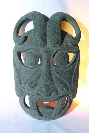 不是亲眼所见,你或许不相信石器时代的雕刻工艺会如此精准圆熟。每一张面孔都严格对称,面具整体向上突起,面部凹凸有致,五官比例协调,眼睛、鼻孔与唇齿间是镂空的,眼角与眉峰的起伏、嘴唇的轮廓,甚至面部肌肉的纹理都清晰可见。试想,在没有金属工具的石器时代,是什么样的能工巧匠,又是使用什么样的器物,敲打琢磨出如此精妙的原始艺术品?