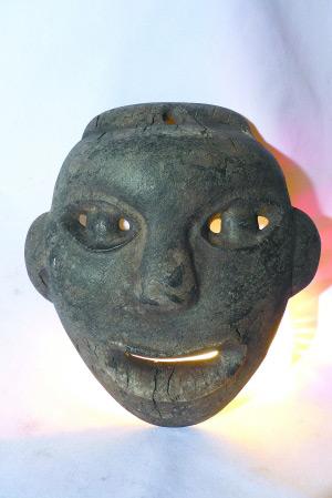 张一平认为,在新石器时代的大漠深处,人类文明曾经经历过一个发达的文明时代。那时也许已经出现了社会分工,甚至有了专门的手工艺人,才会生产出如此精美的玉雕面具。或许万年前,那里曾经水草丰美,人们把精雕细琢的玉面具悬在女神庙中祈福驱邪,或者置于逝者身旁,超度生命的轮回。当然,这只是收藏者的推测,黑皮玉面具的更多谜底尚未揭开。