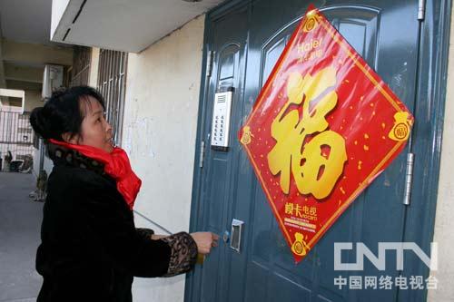 正值本命年的王女士戴上了红绸巾,还在门上贴上了大大的“福”字,喜迎龙年的到来。