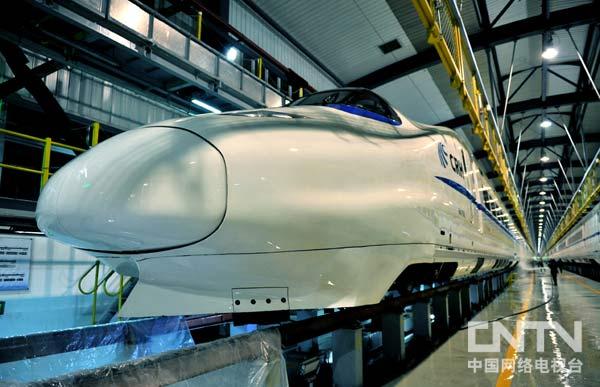 铁路为保证动车每次运行正常,动车运行后都要进行进库检修、保养和保洁。图为待出库的动车。